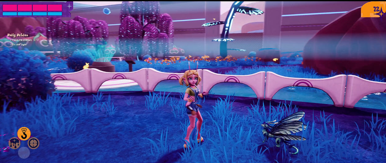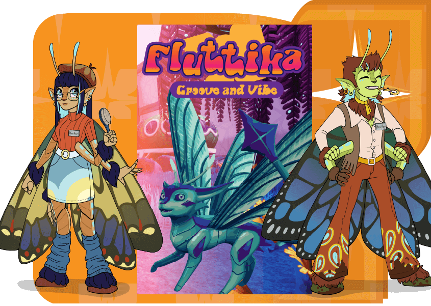 An alien world of giant flowers, butterfly folk, and a special blue nectar called Nectra which allows objects and creatures to float in 0G! Fluttikans have two hearts, one that pumps blood, and the other that pumps 0G nectar throughout their body.