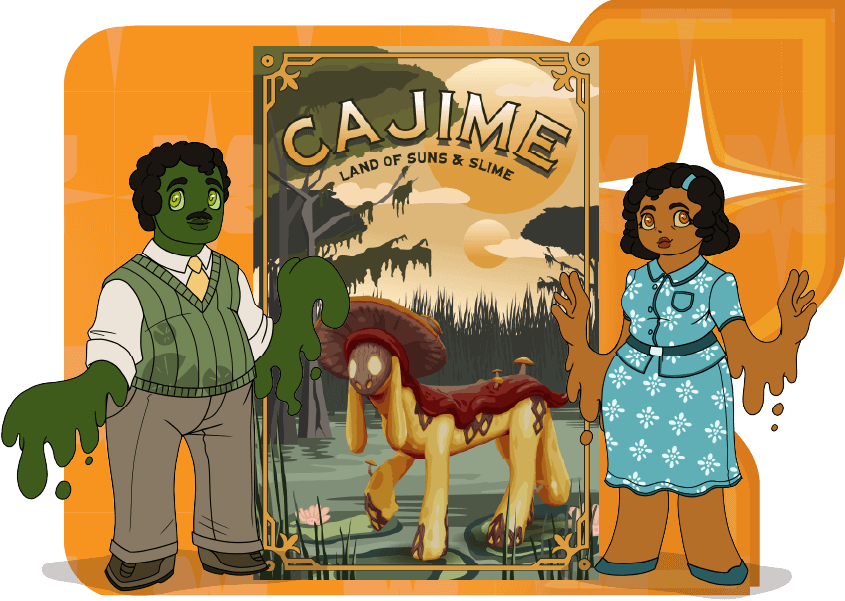 A world covered mostly by water and swamps, Cajime locals tend to do things the old fashioned way. The Jarmane are an amphibious people made from sweet-smelling slimes, and the Flista, are a humanoid species similar to dragonflies.